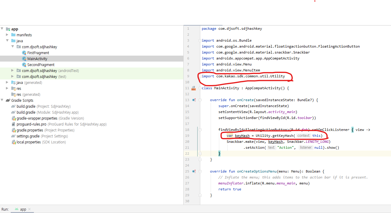 - 소스코드에 hashkey를 구하는 함수를 호출하여 hashkey를 구한다.