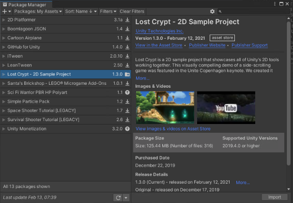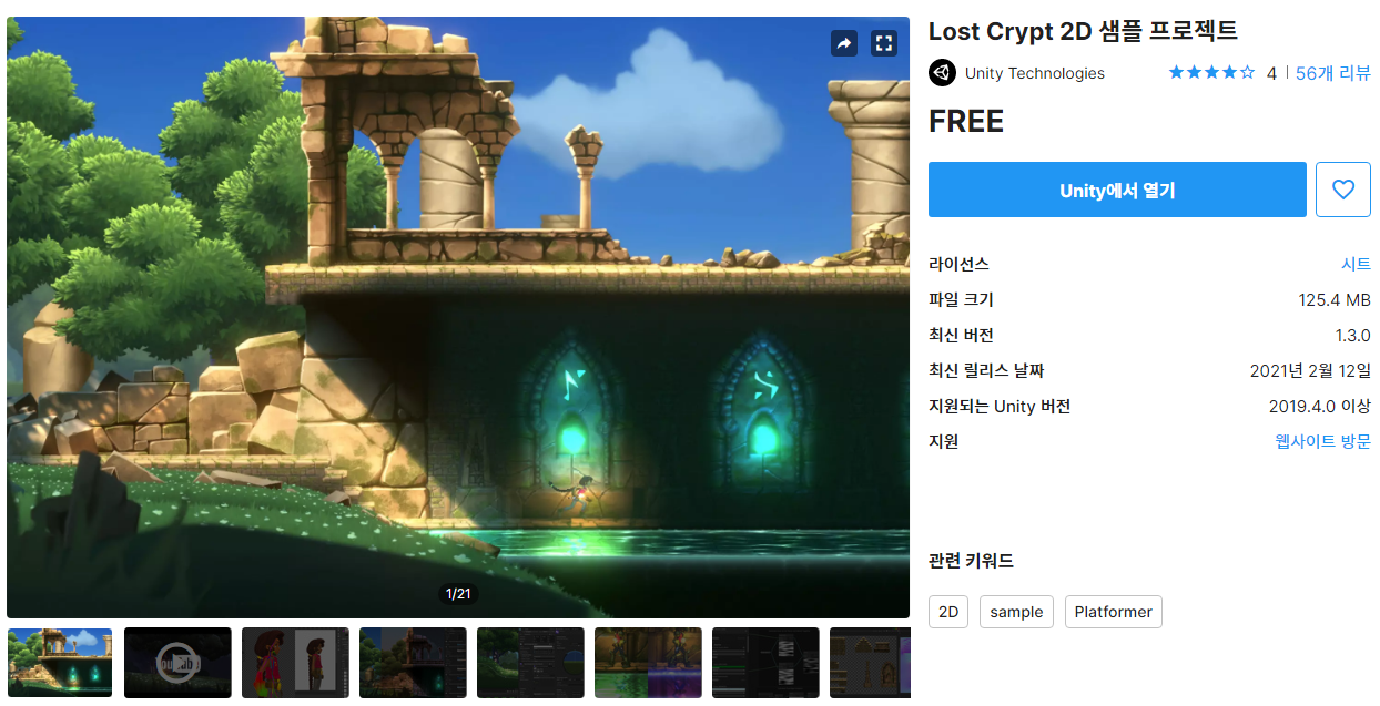 오늘은 어제 2/12 설날에 업데이트 된 Lost Crypt - 2D Sample Project 를 리뷰해 보려고 합니다.