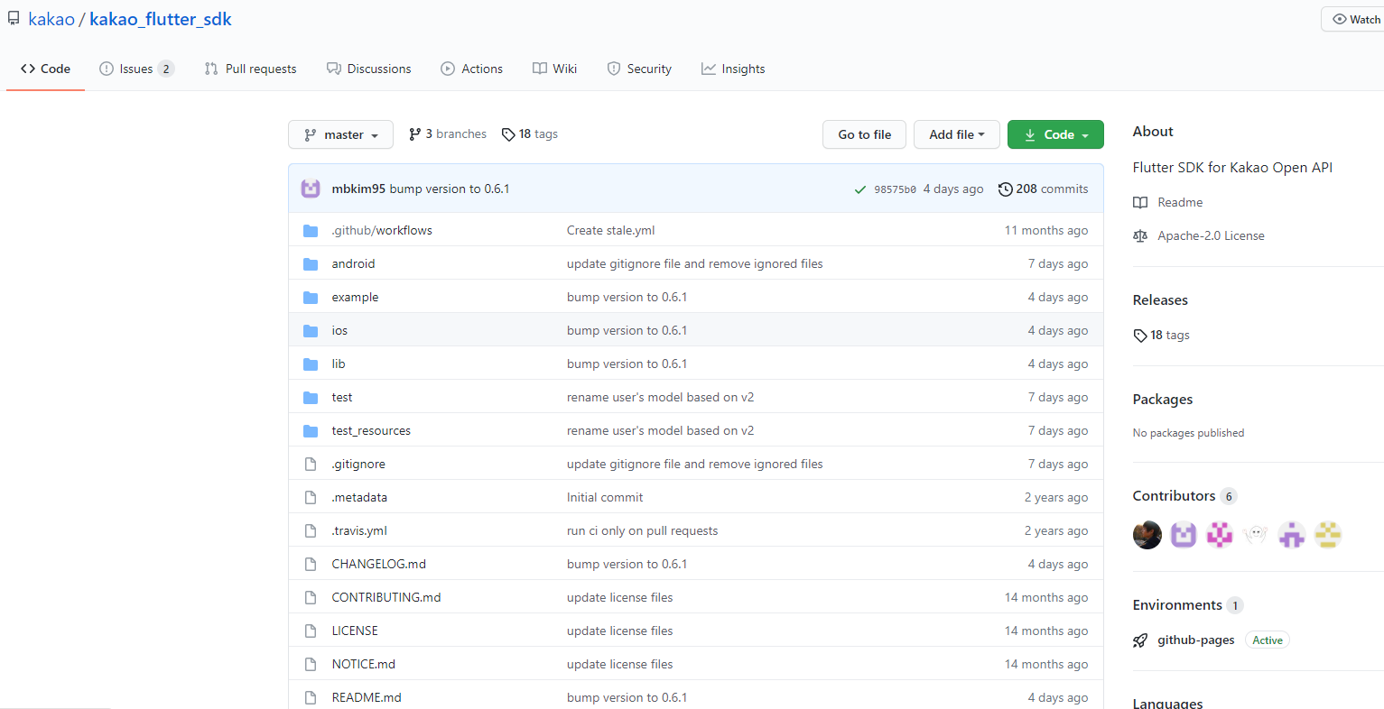 그래서 pub.dev 사이트에 들어가서 kakao_flutter_sdk를 찾았습니다.